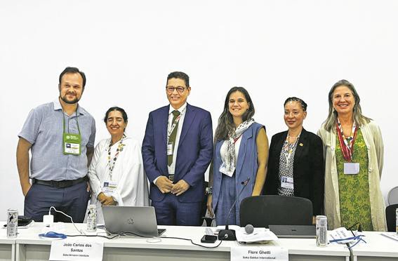 Reprodução/Foto-RN176 João Carlos Júnior, do Instituto Soka Amazônia (terceiro à esq.) entre os painelistas que debateram ética e fé na tranformação da açao climática, na COP. Ele trouxe exemplos práticos da atuação do instituto. Foto: Instituto Soka Amazônia