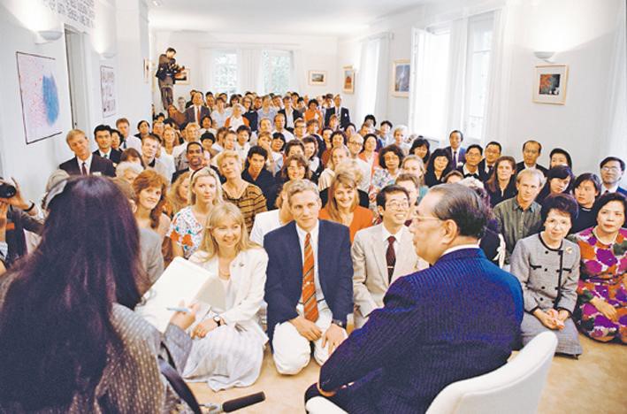 Reprodução/Foto-RN176 Ikeda sensei dialoga calorosamente com os companheiros durante a cerimônia de inauguração do Centro Cultural da Suécia (Estocolmo, 3 jun. 1989). Dr. Daisaku Ikeda, ele foi; pacifista, filósofo, escritor, fotógrafo, poeta e líder budista da SGI atualmente era o Mestre e Presidente da Soka Gakkai Internacional – SGI Foto: Seikyo Press