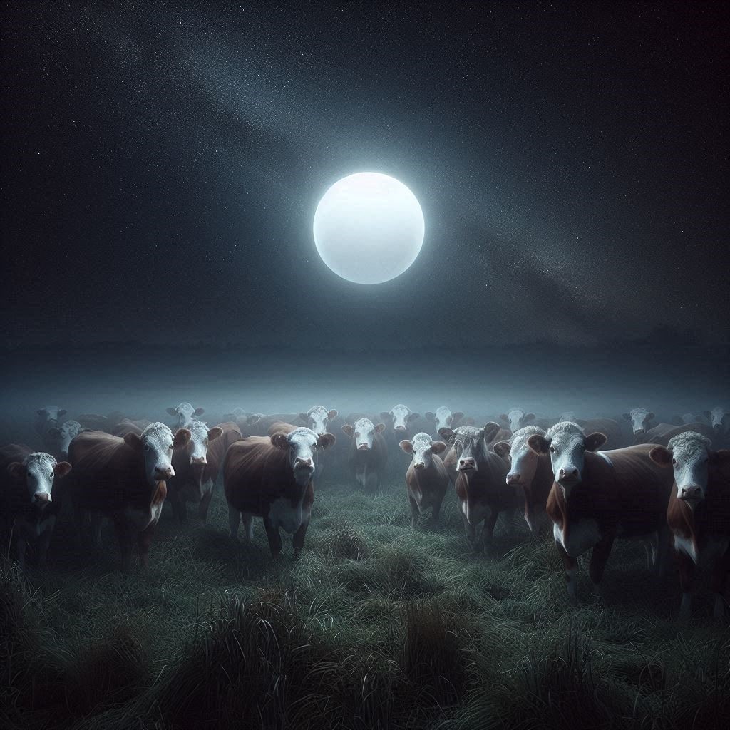 Um subinspetor saiu para patrulhar a área. No caminho, um zelador de uma fazenda de gado fez-lhe um sinal desesperado. Disse que os animais estavam fora de controle. Quando o policial chegou, deparou-se com uma cena difícil de descrever: as vacas circulavam a luz, como se estivessem hipnotizadas, enquanto os cavalos corriam descontroladamente, relinchando e batendo nas cercas.