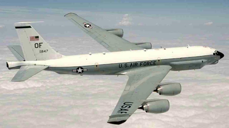 A aeronave, identificada como RC-135U “Combat Sent”, é usada para coleta de informações estratégicas e capaz de detectar e analisar sinais de radares militares estrangeiros. O voo partiu da base RAF Mildenhall, no Reino Unido, e durou pouco mais de sete horas, segundo registros do site FlightRadar24.