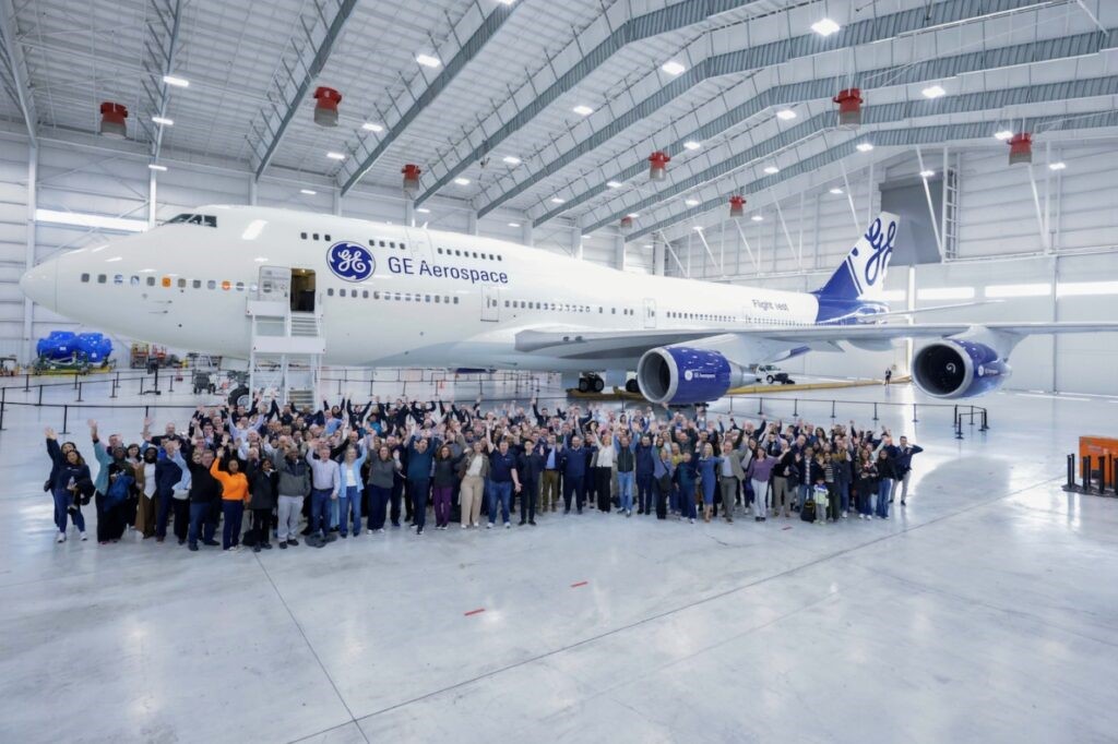 O laboratório aéreo em questão é o Boeing 747 Flying Test Bed (Plataforma de Teste Voadora) da GE Aerospace, que normalmente opera a partir do centro de Operações de Teste de Voo (FTO) da empresa em Victorville, Califórnia, à beira do Deserto de Mojave.