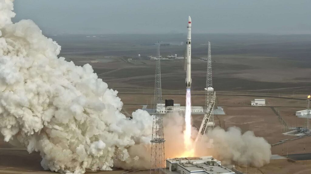 Reprodução/Foto-RN176 Foguete Zhuque-3 decolando do Centro de Lançamento de Satélites de Jiuquan, no Deserto de Gobi, noroeste da China. Crédito: LandSpace