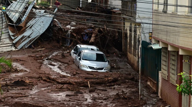 Reprodução/Foto-RN176 Imagens mostram veículos cobertos por lama em Juiz de Fora, MG (Foto: Pablo PORCIUNCULA / AFP)