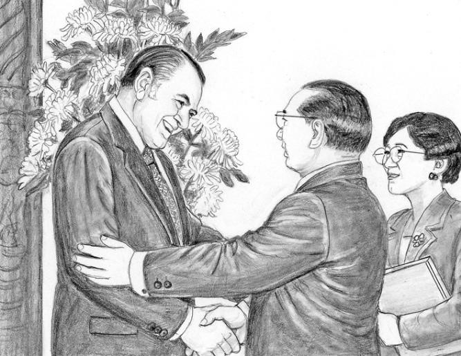 Na ocasião, ocorreu um profícuo diálogo sobre vários assuntos, tais como a liderança para servir ao povo, o dramático processo de democratização do Chile, e o intercâmbio cultural entre Chile e Japão na abertura de uma nova era pan-pacífica. O encontro inicialmente previsto para quinze minutos se estendeu para cerca de 45 minutos.