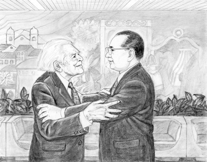 No dia 8, ele fez uma visita de cortesia ao presidente Gaviria e à primeira-dama Ana Milena Muñoz no palácio presidencial, conhecido como Palácio Nariño. Nessa ocasião, ele presenteou o presidente com um longo poema enaltecendo a coragem e as ações do grandioso líder jovem, e expressando sua esperança: “Que haja glórias no futuro da Colômbia!”.