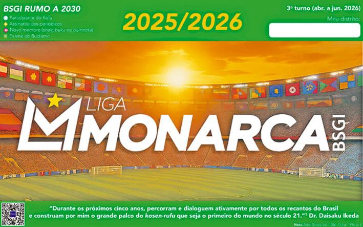 No Brasil, a Liga Monarca tem sido o resultado prático desse movimento, envolvendo lideranças e membros das organizações de base da BSGI. Nessa competição humanística, na qual todos ganham, pois a vitória de um impulsiona o avanço de todos, amplia-se a correnteza de pessoas valorosas, com base no diálogo e na sincera oração e união. “A abertura de um caminho inicia-se do diálogo. As palavras imbuídas de coragem, sinceridade e convicção abrem as portas do coração fechado das pessoas”, afirma Ikeda sensei, nessa comprovação do esforço empreendido por todos.1