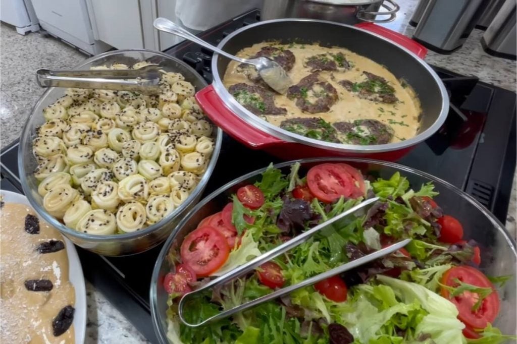 - Coloque a mostarda Dijon, o queijo parmesão ralado, o sal, a pimenta do reino, deixe ferver para encorpar, disponha os bifes, regue com o molho, deixe ferver por 2 minutos e finalize com cheiro verde.