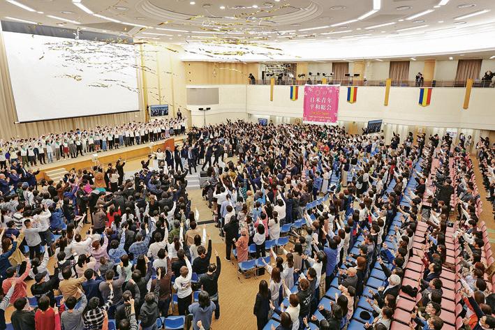 No encerramento da convenção, o presidente Harada, enaltecendo a cena dos jovens do Japão e dos Estados Unidos de braços entrelaçados em juramento mútuo pela paz, expressou seu desejo de que cada um deles esteja na linha de frente e transmita o bastão do kosen-rufu para a próxima geração. Ele enfatizou ainda que a legião da SGI — um bastião da paz e da solidariedade humana — está se expandindo pelo mundo, e que a força e a paixão dos jovens certamente transformarão a época. Conclamou a todos a construir, de forma inabalável, um século 21 em que a justiça vença e o povo triunfe.