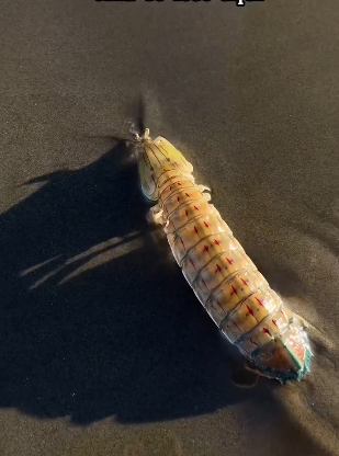 Um vídeo gravado na praia do Guaraú, em Peruíbe, litoral de São Paulo, mostra o momento em que um turista é surpreendido pelo ataque de uma lagosta-boxeadora (Odontodactylus scyllarus), popularmente conhecida como camarão-louva-a-deus-palhaço. A espécie, que pode atingir até 18cm de comprimento, destaca-se não só pela coloração exuberante — com tons de verde, azul e laranja — mas também por deter o recorde do golpe mais veloz e potente do reino animal.