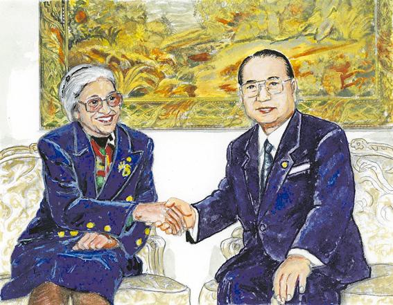 No campus de Los Angeles da Universidade Soka, Shin’ichi se encontrou com Rosa Parks, conhecida como a “mãe do movimento pelos direitos civis americanos”.