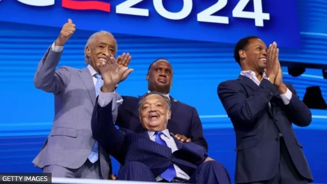 Reprodução/Foto-RN176 Jesse Jackson na convenção democrata de 2024, em Chicago
