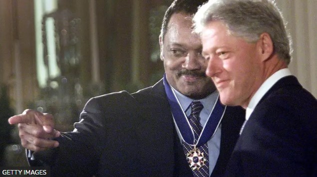 Reprodução/Foto-RN176 Jesse Jackson ao receber a Medalha Presidencial da Liberdade do então presidente americano Bill Clinton, em 2000