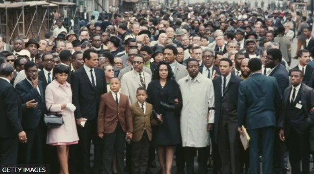 Reprodução/Foto-RN176 Jesse Jackson ao lado da esposa de Martin Luther King Jr., Coretta Scott King, após o assassinato do líder