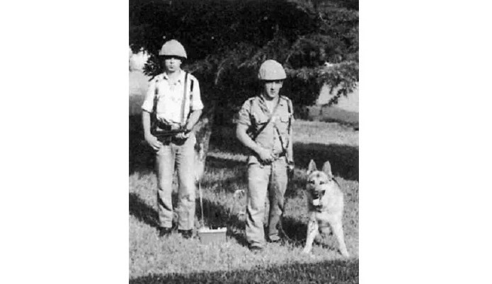 Os militares ficaram em alerta e, agarrando-se às suas metralhadoras, soltaram o cão, que foi direto para o local onde ouviram o barulho dos galhos. Esperaram que o cão fizesse algum tipo de barulho ou latido, mas depois de alguns segundos ele voltou lento e cambaleante. O cão voltou doente. Depois de algum tempo, o cão começou a correr ao redor dos soldados (os cães são ensinados a fazer isso para proteger seus donos).