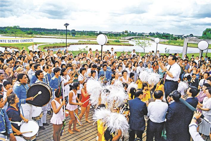 Reprodução/Foto-RN176 Durante a sua terceira visita ao Brasil, Ikeda sensei encoraja os membros da BSGI do Distrito Federal reunidos em um parque de Brasília, DF (fev. 1984). Ele foi um filósofo, escritor, fotógrafo, poeta e líder budista, era Mestre e Presidente da Soka Gakkai Internacional – SGI – Foto: Seikyo Press/JBS Foto: Seikyo Press