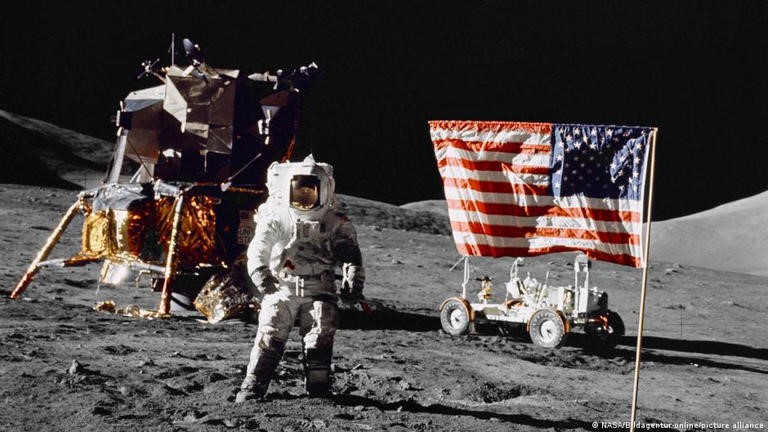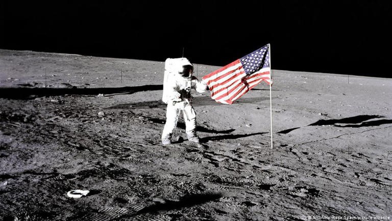 Reprodução/Foto-RN176  Apollo 12: Charles Conrad Jr. segura bandeira americana na Lua, em 1969© NASA/Heritage Space/picture alliance
