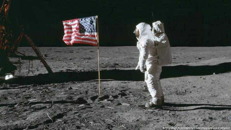 Reprodução/Foto-RN176 Buzz Aldrin diz que viu a bandeira americana cair devido à onda de choque gerada pela partida do módulo lunar© NASA/Neil A. Armstrong/Cover Images/picture alliance
