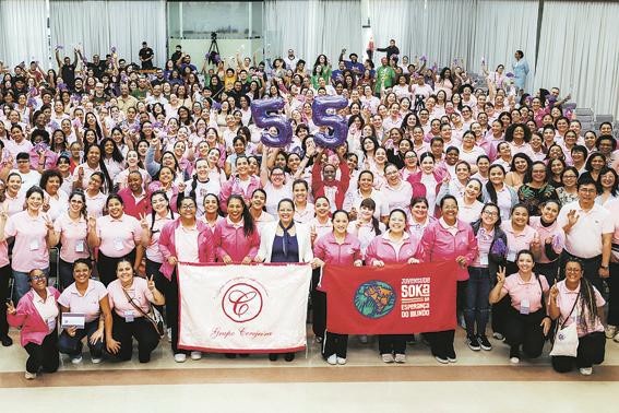 “Os bastidores são o grande palco do grupo Cerejeira sem aplausos. Como flores que se renovam a cada primavera, seguimos com o objetivo de desbravar o futuro com coragem, alegria e esperança.” Essas palavras, expressas por Mirian Takada, responsável pelo Cerejeira da BSGI, tocaram profundamente a todos. Ela compartilhou que a comemoração dos 55 anos já vem ocorrendo há um ano, com o movimento “365 dias de vitórias eternamente com Ikeda sensei”, realizado entre outubro de 2024 e outubro de 2025, incluindo recitação diária de daimoku, visitas às integrantes e ações para concretização de shakubuku e buinzoka.
