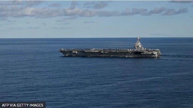 Reprodução/Foto-RN176 O USS Gerald R. Ford é o maior porta-aviões do mundo, com capacidade para transportar até 90 aeronaves – Crédito,AFP via Getty Images