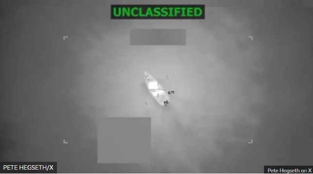 Reprodução/Foto-RN176 O último ataque a uma suposta narcolancha “do (grupo venezuelano) Trem de Aragua” deixou seis mortos, segundo declarou o secretário de Defesa americano Pete Hegseth – Crédito,Pete Hegseth/X