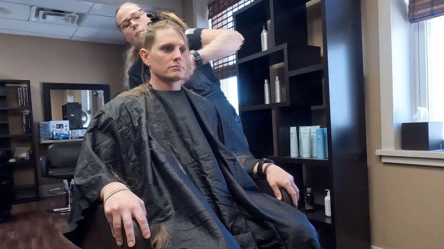 Reprodução/Foto-RN176 Kara cortou o cabelo em 21 de maio, um dia antes de sua cerimônia de formatura – (crédito: Kara Corcoran)