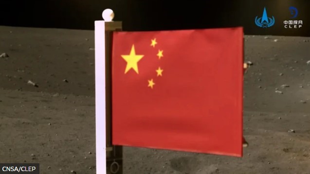 Reprodução/Foto-RN176 Em 2020, a China fincou uma bandeira na Lua em sua missão Chang’e-5