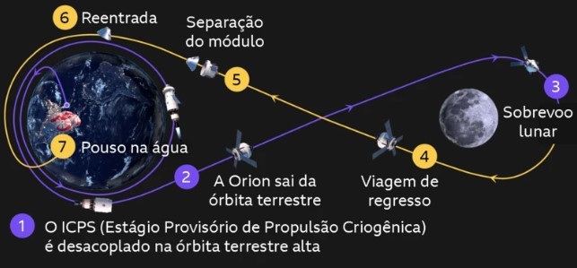 RN176 Mapa da trajetória que será percorrido pela Artemis 2 no caminho lunar