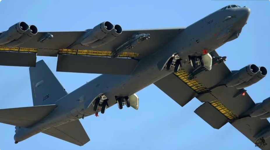 RN176 O Boeing B-52 Stratofortress é um bombardeiro estratégico americano de longo alcance, subsônico e movido a jato. O B-52 foi projetado e construído pela Boeing, que continua fornecendo suporte e atualizações. É operado pela Força Aérea dos Estados Unidos (USAF) desde a década de 1950. O bombardeiro é capaz de transportar até 70.000 libras (32.000 kg) de armas e tem um alcance de combate típico de mais de 8.800 milhas (14.080 km) sem reabastecimento aéreo.
