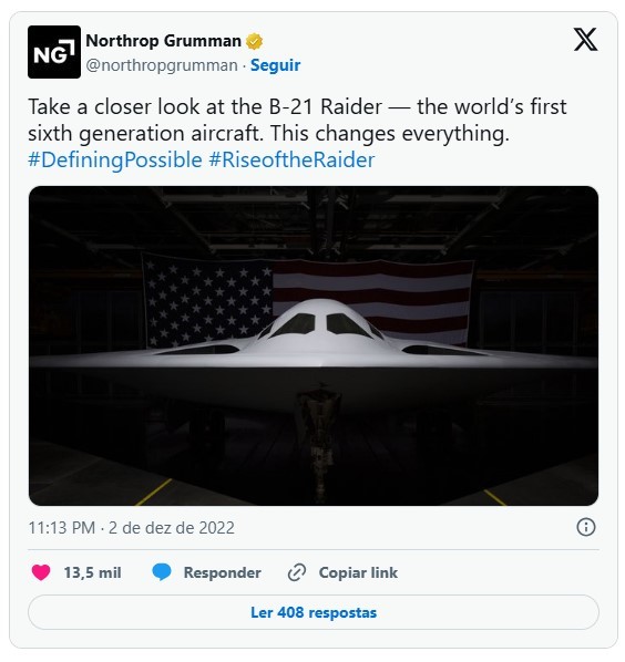 Fonte: The War Zone | Foto: X @northropgrumman | Este conteúdo foi criado com a ajuda da IA e revisado pela equipe editorial