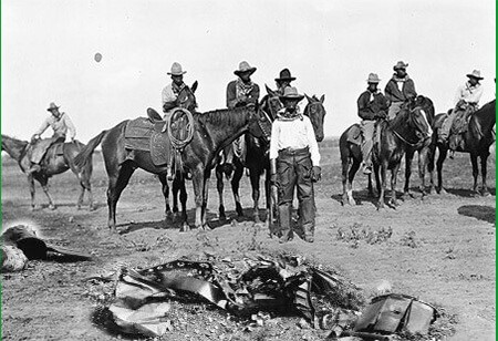 RN176 Suposta foto do fazendeiro John Ellis, olhando os destroços do objeto voador não identificado do ex-jornal The Nebraska State estadunidense