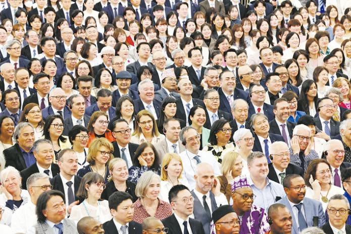 Reprodução/Foto-RN176 Participantes da 9a Reunião de Líderes da organização, entre eles, representantes de 75 países e territórios (16 nov. 2025). Foto: Seikyo Press