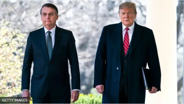 Reprodução/Foto-RN176 Trump e Bolsonaro em encontro em 2019, quando os dois eram presidentes