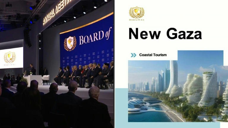 Os Estados Unidos apresentaram, nesta quinta-feira (22), sua visão de uma “nova Gaza” que, em três anos, transformaria o devastado território palestino em um luxuoso complexo de arranha-céus à beira-mar.