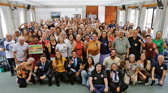 “Mude a Si, Mude o Mundo — A Religião da Revolução Humana” foi o tema que integrou membros e convidados da Regional Industrial, da RM Vila Prudente, CCLP, em São Paulo, no dia 21 de março. Com a participação de mais de oitenta pessoas, a atividade foi promovida no Centro Cultural Campestre (CCCamp) em Itapevi, SP. Dividida em três blocos, a programação trouxe vitórias compartilhadas por representantes dos distritos e da Juventude Soka. Na sequência, componentes das Divisões Sênior e Feminina se reuniram para dialogar em torno de líderes convidados, o mesmo ocorrendo com a Juventude Soka e a Divisão dos Estudantes, envolvidos também numa movimentada dinâmica. A atividade seguiu com visitação pelo CCCamp e finalizada com uma cerimônia em memória dos beneméritos, veteranos e familiares.