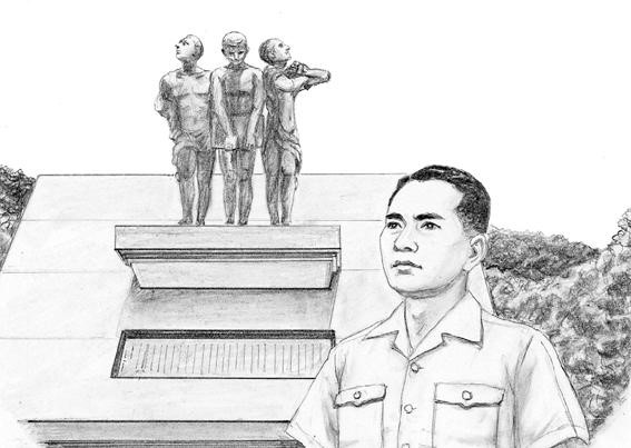 Reprodução/Foto-RN176 Em 1960, presidente Ikeda visita Okinawa, palco de batalhas durante a Segunda Guerra Mundial. Ilustrações: Kenichiro Uchida