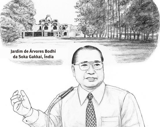 Na reunião de gongyo, no segundo dia (26 de fevereiro), Shin’ichi anunciou a construção do Jardim de Árvores Bodhi da Soka Gakkai nos arredores de Nova Délhi, Índia. E reconfirmou que, à luz do espírito de Nichiren Daishonin de desejar a felicidade das pessoas, o propósito da nossa prática budista se encontrava em conduzirmos, cada qual, uma vida alegre e prazerosa, afirmando: