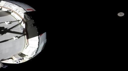 RN176 A Orion capturou esta selfie de alta resolução no espaço com uma câmera montada em uma de suas asas de painéis solares durante uma inspeção externa de rotina da espaçonave no segundo dia da missão Artemis II. A imagem foi transmitida pelo Sistema de Comunicações Ópticas da Orion Artemis II