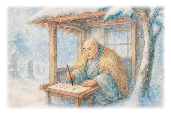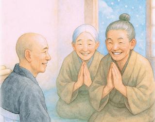 Reprodução/Foto-RN176 Desenho de ilustrações do Bonzo Ryokan e seus discípulos orando para chover na cidade de Kamakura – ilustração do JBS