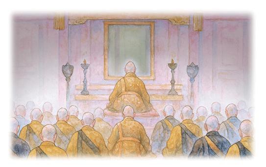 Reprodução/Foto-RN176 Desenho de ilustração de Nichiren Daishonin revelando a sua verdadeira identidade de buda – ilustração do JBS