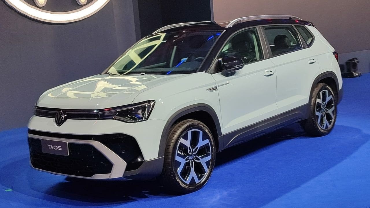 Porém, a VW quer dar uma alavancada no modelo, que anda meio “esquecido”. Para também bater de frente com os chineses que andam surgindo por aí, bem como outros SUVs médio que vem crescendo nas vendas (vide Ford Territory), o Taos ganhou cara nova e ar de modelo mais premium. Passou a trazer nova dianteira, inspirada em modelos mais recentes da Volks (lembra Tera e Novo Tiguan): deixou de lado as linhas sisudas e mais quadradas em prol de uma dianteira mais limpa e suave.